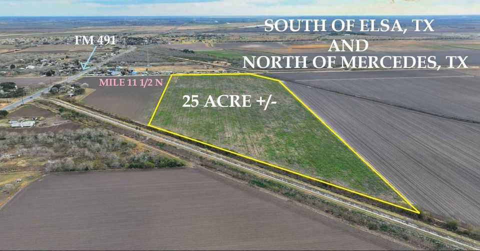 EST. 25 ACRE TRACT north of Mercedes, TX. Located at: https://www.google.com/maps/dir//26.2219852,-97.9134648/@26.2204308,-97.9142963,1403m/data=!3m1!1e3?entry=ttu